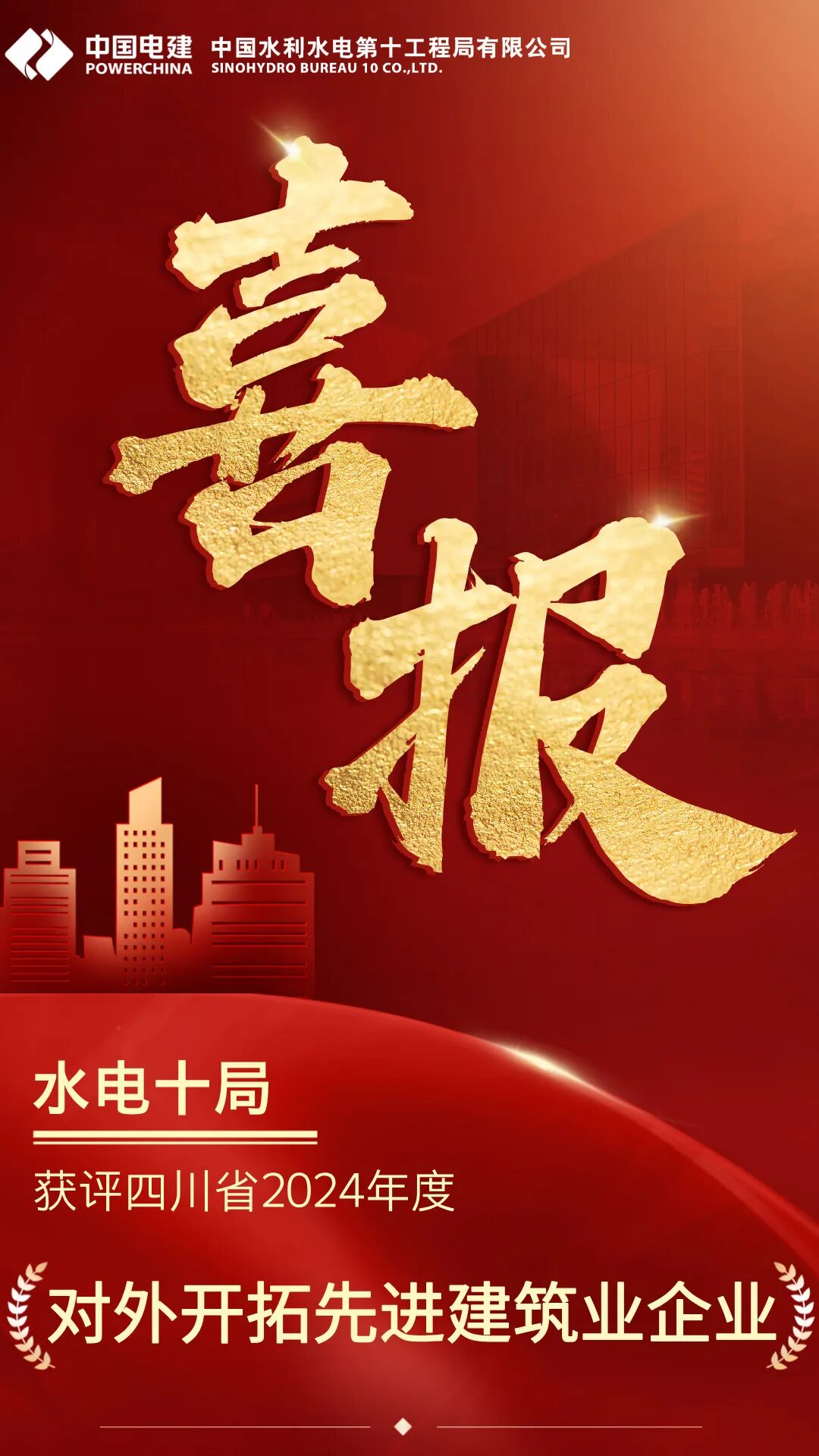 近日,四川省住房和城乡建设厅发布《关于表扬2024年度对外开拓先进建筑业企业和个人的通报》,通报表扬积极主动开拓省外建筑市场,推动全省建筑业外向型经济发展的优秀企业及个人。水电十局荣获“2024年度对外开拓先进建筑业企业”荣誉称号,公司副总经理胡湛军荣获“2024年度对外开拓建筑业企业经理先进个人”荣誉称号。