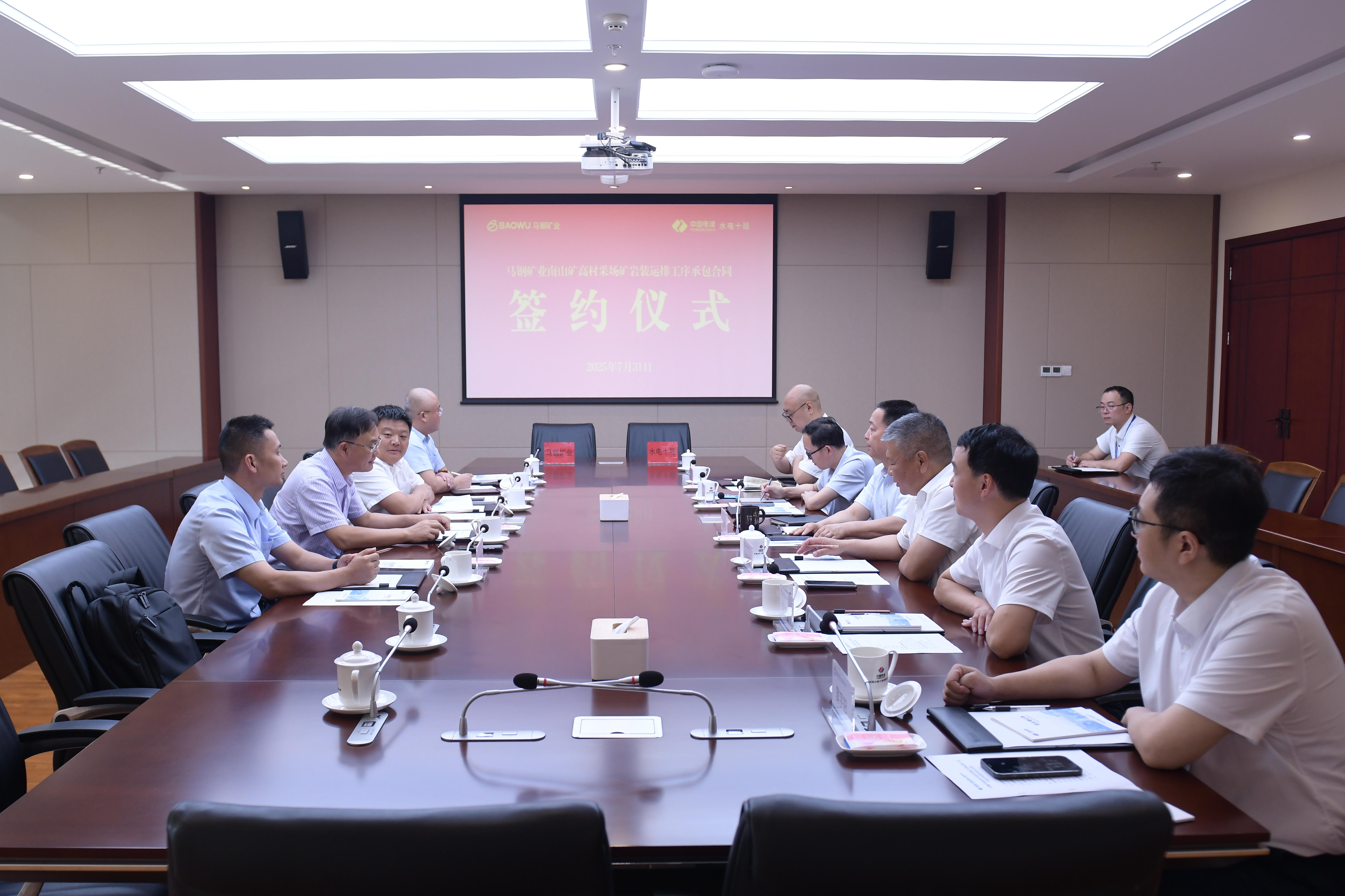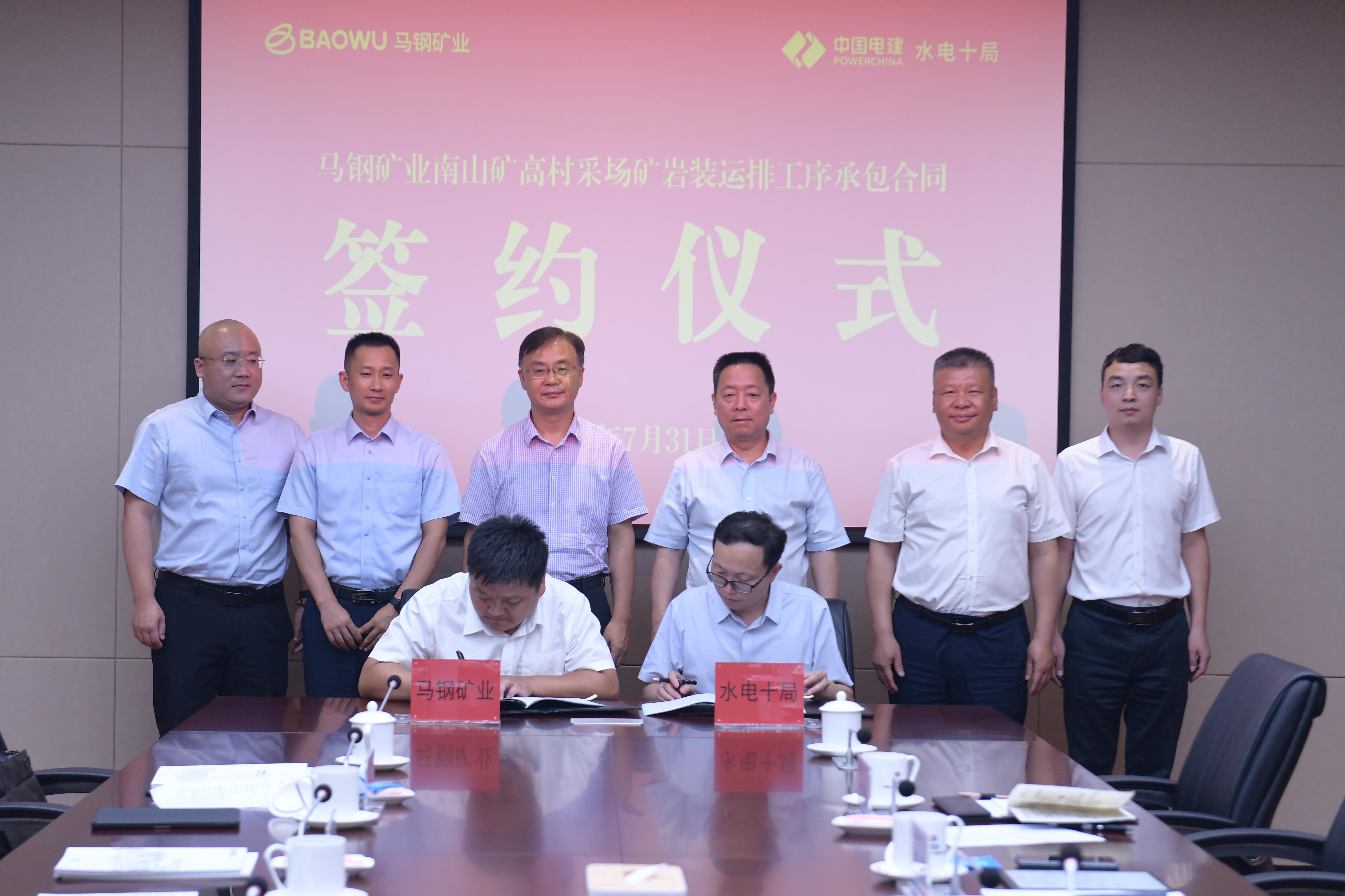 7月31日,马钢矿业资源集团有限公司(以下简称马钢矿业)南山矿采场矿岩装运排工序承包合同签约仪式在成都办公区举行。公司党委书记、董事长范开平,公司副总经理皮晶敏;马钢矿业党委书记、董事长吴新义出席签约仪式。