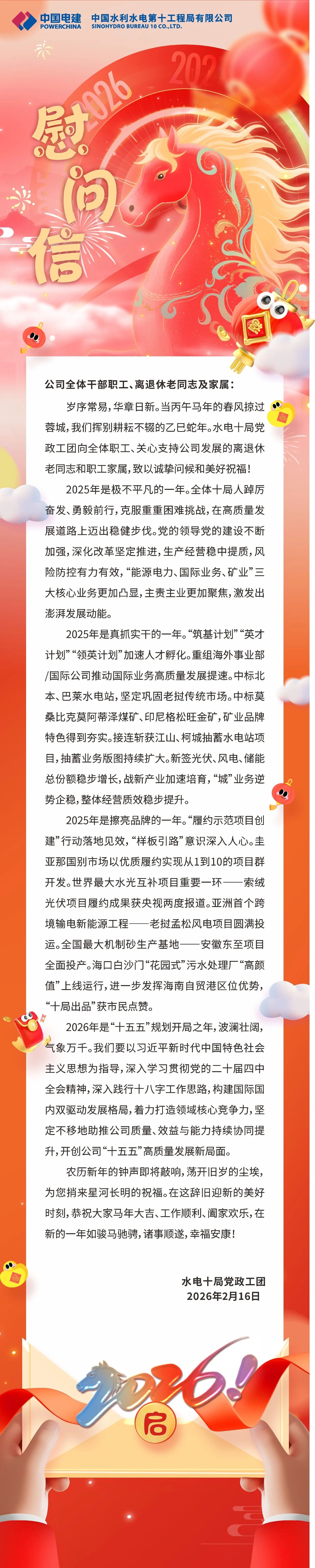 新春慰问信 | 致水电十局全体员工、离退休老同志及家属