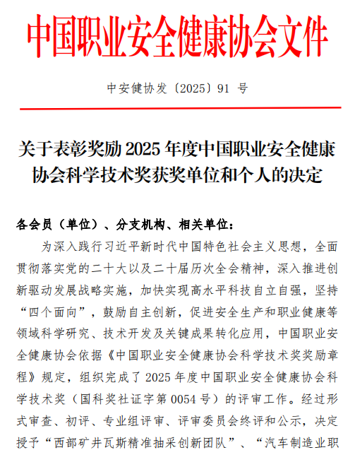 近日,公司安全质量环保监督部联合矿业公司申报的“金属矿山高效湿式与综合除尘系统集成与示范”项目,凭借突出的技术创新价值与实践应用成效,荣获2025年度中国职业安全健康协会科学技术进步一等奖。公司职业安全健康领域技术创新再添一项成果。