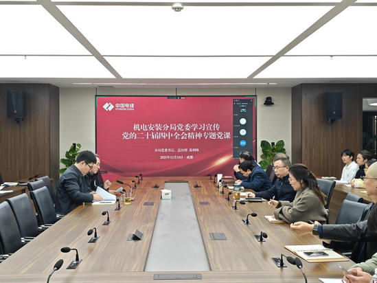 12月18日,机电安装分局党委书记以“以全会精神引领方向 以高质量发展开新局”为题,讲授深入学习贯彻党的二十届四中全会精神专题党课。
