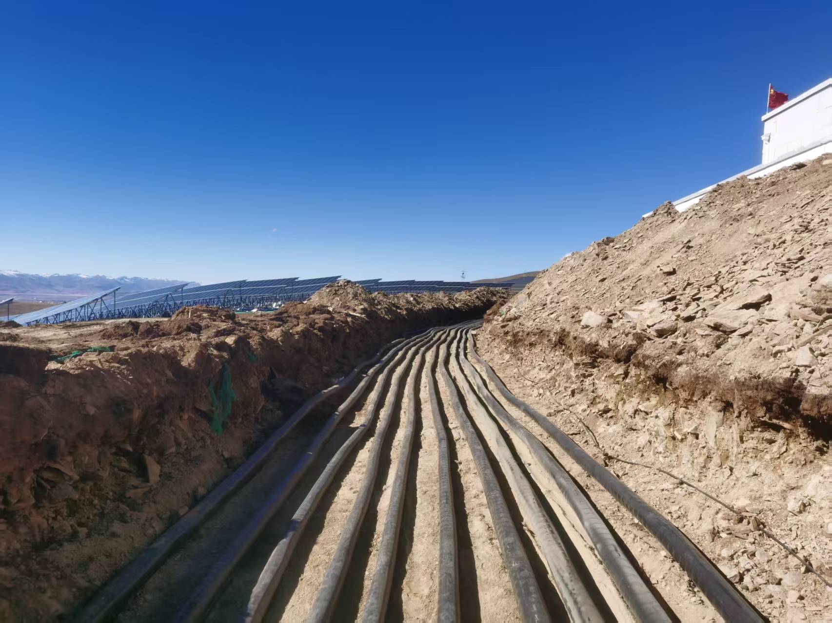 项目集电线路全长57.7千米,沿线海拔4100米至4700米,是项目不可或缺的“能源大动脉”。面临气候恶劣、高寒缺氧、坡度陡峭、道路狭窄等诸多挑战,项目部制定专项施工方案,同步推进生态环境保护,在推进建设的同时最大程度减少对生态的破坏。项目团队全面紧盯技术、安全、质量等关键环节,严格按照工序施工,攻克多重挑战,高质量完成集电线路35千伏地埋电缆敷设任务,为项目首次并网奠定基础。