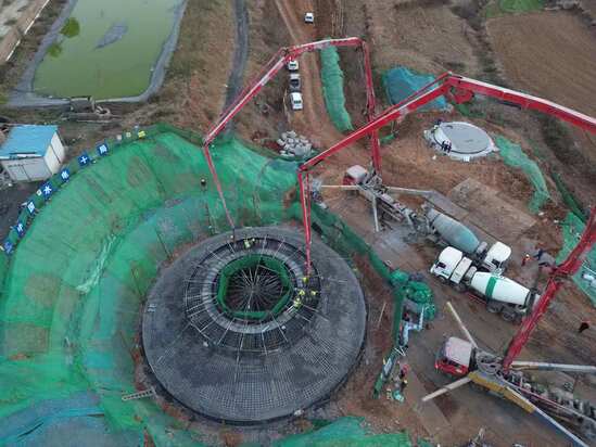 华能磁县风电项目总容量为50兆瓦,有8台6.25兆瓦风力发电机组,配置10兆瓦/40兆瓦时储能系统。此次浇筑的首台风机基础为直径22米的钢筋混凝土圆形结构。