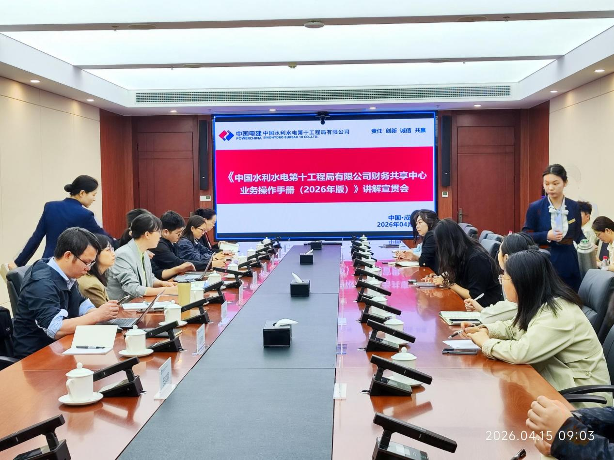 4月15日,公司在蓉召开《中国水利水电第十工程局有限公司财务共享中心业务操作手册(2026年版)》(以下简称《手册》)专项宣贯培训,培训采用“主会场+分会场”相结合的形式开展。