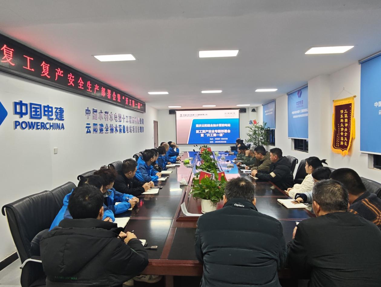 2月26日,重庆云阳抽蓄项目开展复工复产安全生产部署暨“开工第一课”学习,动员全体参建人员迅速收心归位,筑牢安全防线。
