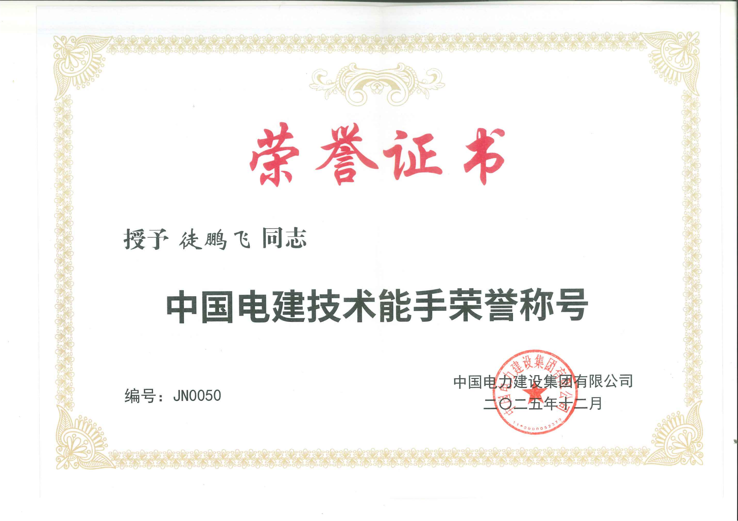 “中国电建技术能手”称号是集团公司对技能人才专业水平与职业素养的权威认证。徒鹏飞扎根勘测设计一线多年,在重大项目攻坚、技术工艺革新等工作中勇挑重担,以精湛技艺破解多项技术难题,凭着“传帮带”的责任担当带动团队技能水平整体提升,充分展现了公司职工的卓越风采。