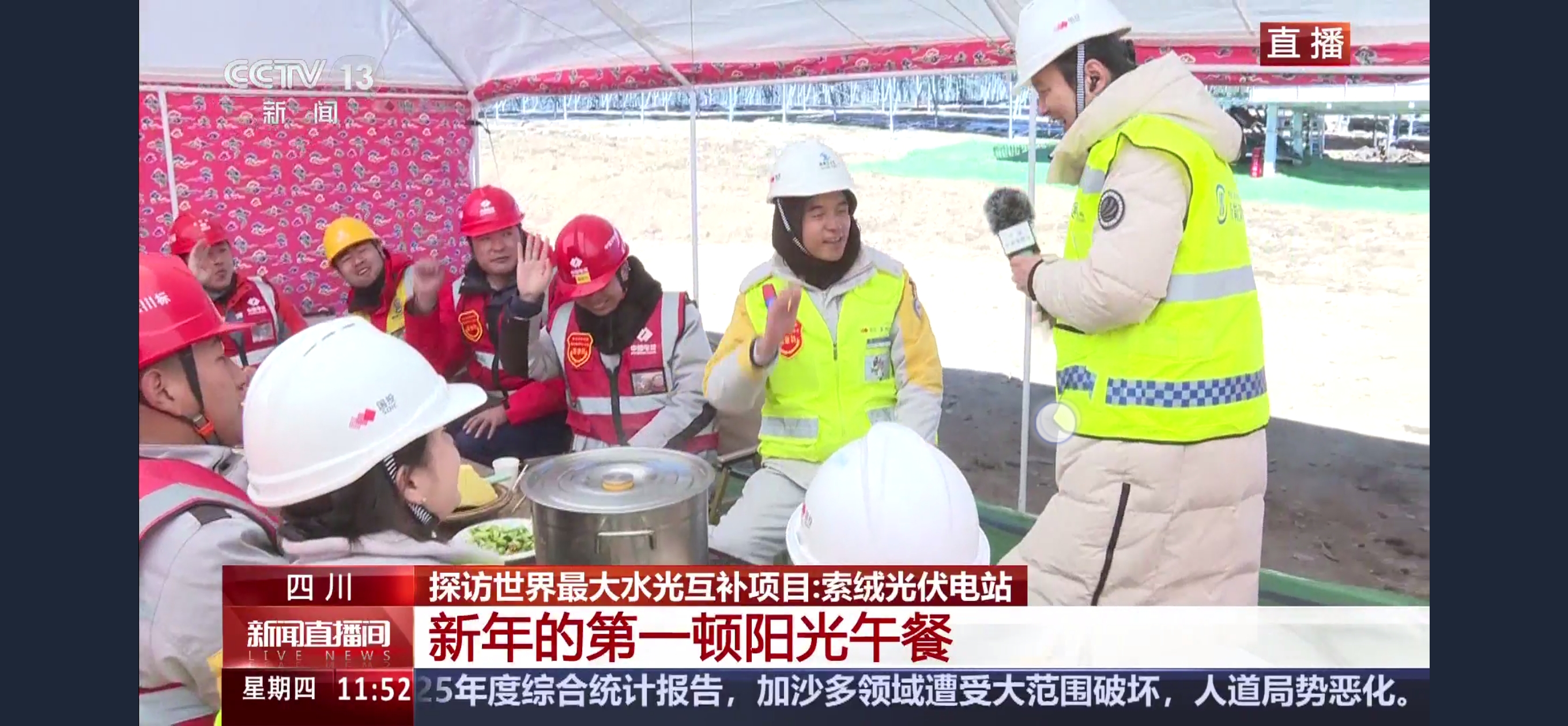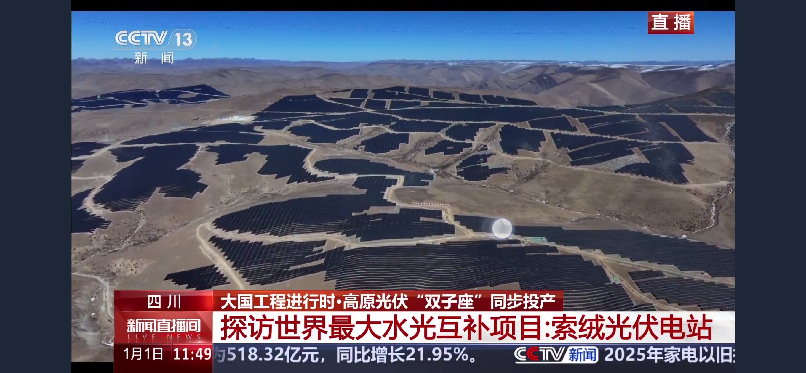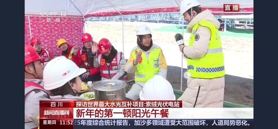 1月1日,央视新闻频道《新闻直播间》“大国工程进行时”栏目跨年直播,央视新闻记者探访索绒光伏项目现场,用5分钟专题片,再次对该项目进行报道。