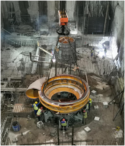 机电安装分局老挝南公1水电站1号机座环吊装就位