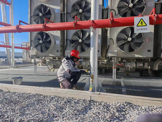 随后,他继续向前,紧紧锁定每一个施工节点,尽管手指冻得有些僵硬,仍旧仔细检查着接地体的连接情况,逐一确认螺栓的紧固度,仔细排查是否存在锈蚀、松动等隐患。寒风卷着雪粒打在他的脸上、脖子上,但他的眼神始终专注而坚定,不放过任何一个细微的瑕疵,逐一核对、反复查验,用严谨细致的态度筑牢工程质量的第一道防线。