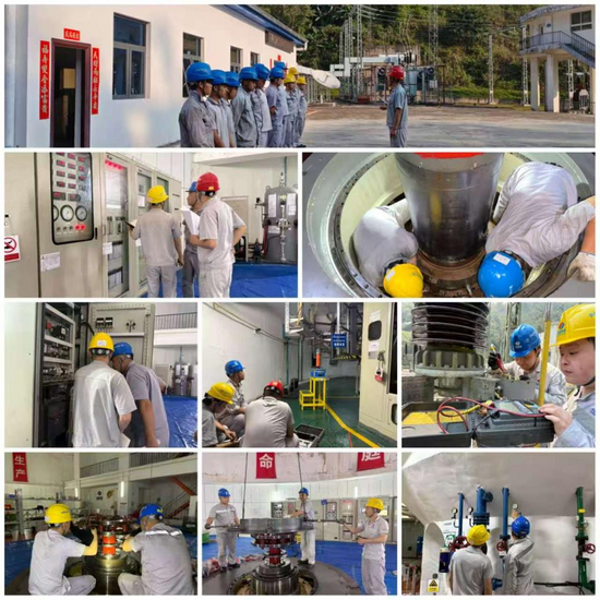 水机部分检修现场,运行人员在维护师傅的指导下,亲手拆解、调试核心部件,汗水浸透工装却眼神专注。