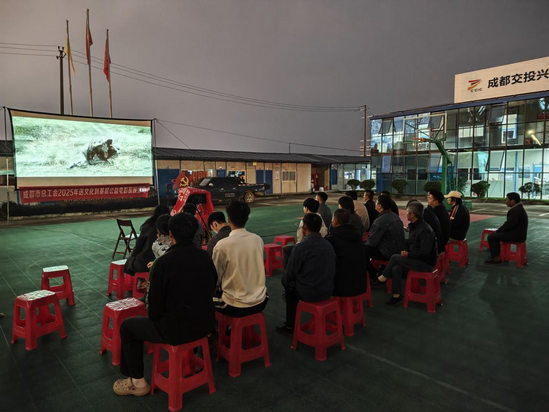 活动作为工会组织服务基层建设者的重要举措,通过露天电影放映形式,为一线建设者提供了丰富的文化服务。夜幕降临之际,项目生活区露天广场上搭建起临时放映场地。当晚放映的影片《志愿军:雄兵出击2》吸引了项目员工和众多建设者前来观看。影片展现的革命精神与英雄气概,与建设者们日夜奋战的实干精神相互映照,形成了浓厚的爱国主义氛围。