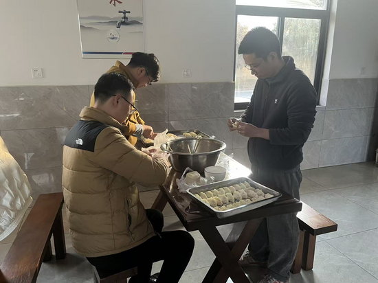 面粉的微尘在厨房灯光下静静氤氲,厨师在一旁熟练地拌着馅料——韭菜、猪肉,再配上简单调料,咸香渐渐弥漫开来。他笑着招呼:“会包饺子的都来露一手,今天让大家尝尝天南地北的味道。”这是一年中黑夜最长的日子,却因几盆饺子馅、几叠面皮,成了工地上最温暖人心的时刻。同事手上沾着面粉,唇边挂着笑语,有人说起家乡的冬至习俗,有人笑谁的饺子“露了馅”。盘子渐渐摆满,饺子越排越密。在这热热闹闹之间,项目部成了一个大家庭——面皮裹住的是馅料,也是此刻无间的温情。